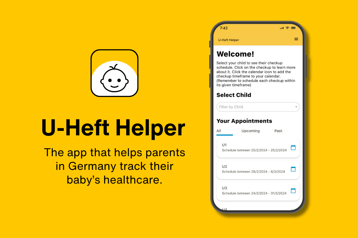 Germany requires six mandatory checkups (Untersuchungen) before a child's first birthday. With the U-Heft Helper, parents can add these checkups to their calendars in a few clicks, so their baby gets the right care at the right time.